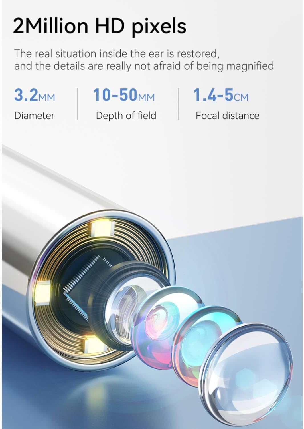 - Bright LED Lighting with Clear Camera Lens - The 3.6mm fixed-focus camera includes 4 LED lights with 3 adjustable brightness levels and 4× digital zoom. Designed for general ear, skin, nose, and oral inspection with a safe viewing distance of 1.4–2 cm.