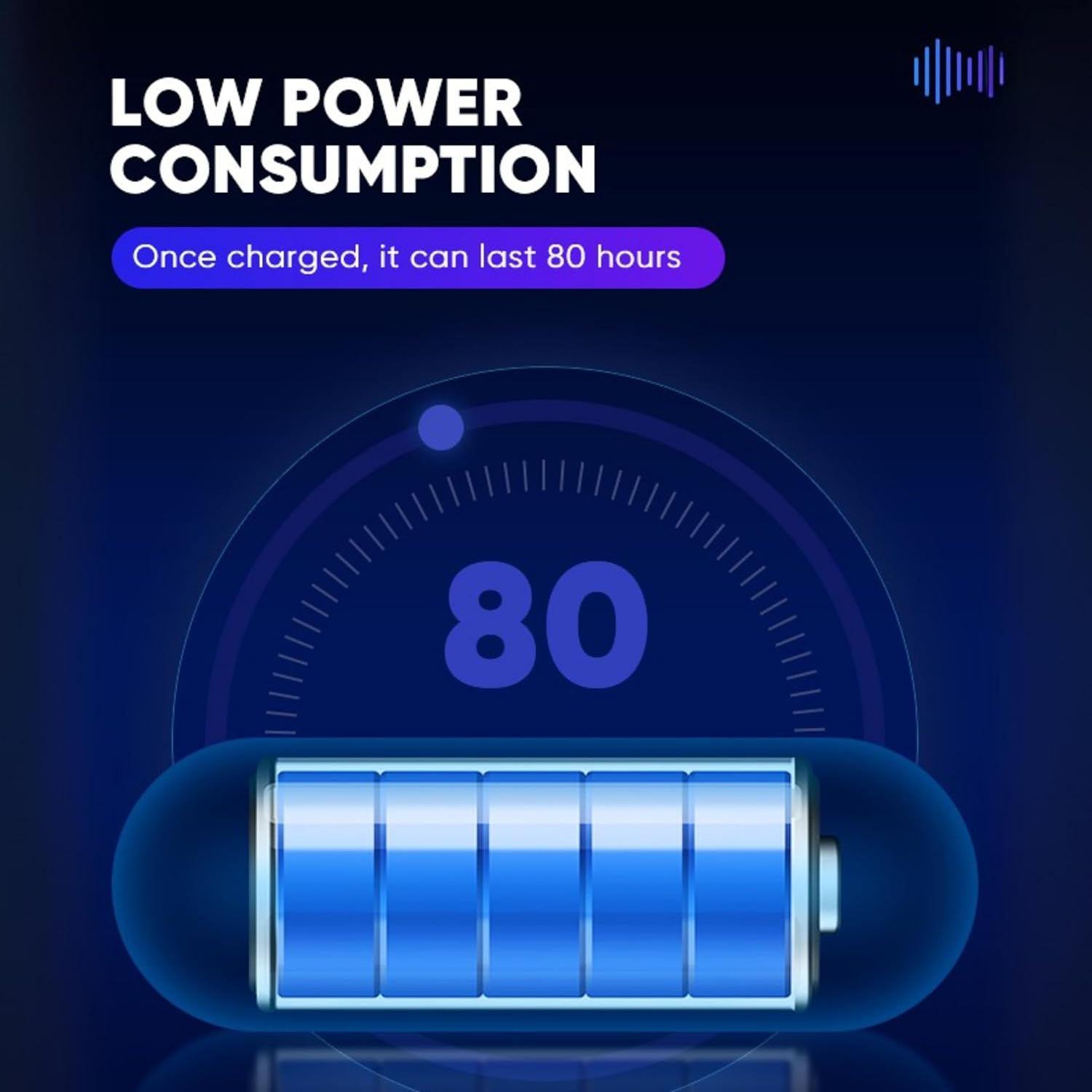 - Rechargeable Battery – Up to 80 Hours Use – Each device is powered by a built-in lithium battery offering extended use on a single charge. Includes USB cable for quick recharging (4–6 hours).